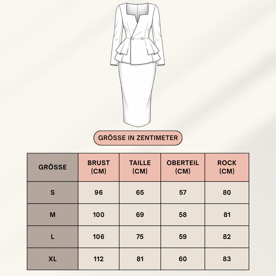 Styling-Tipp: Kombinieren Sie das Set mit spitzen Pumps und einer strukturierten Handtasche für einen vollendeten Business-Look. Für einen eleganteren Abendauftritt ergänzen Sie mit goldenem Schmuck und einem dezenten Absatz – zeitlos, selbstbewusst und stets stilvoll.
